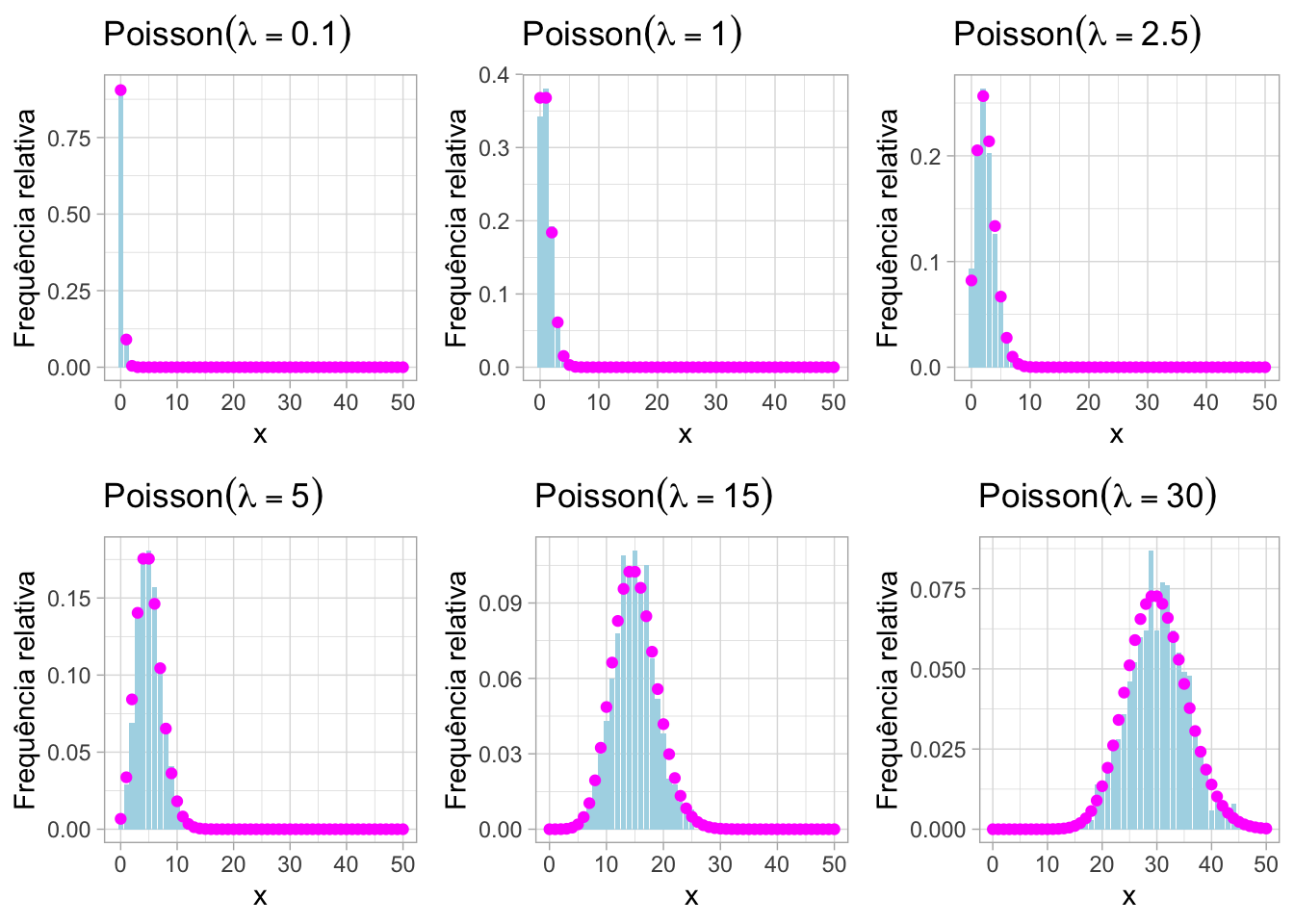No R temos acesso as mais comuns distribuições univariadas. Todas as funções tem as seguintes formas: