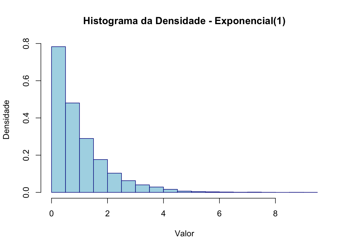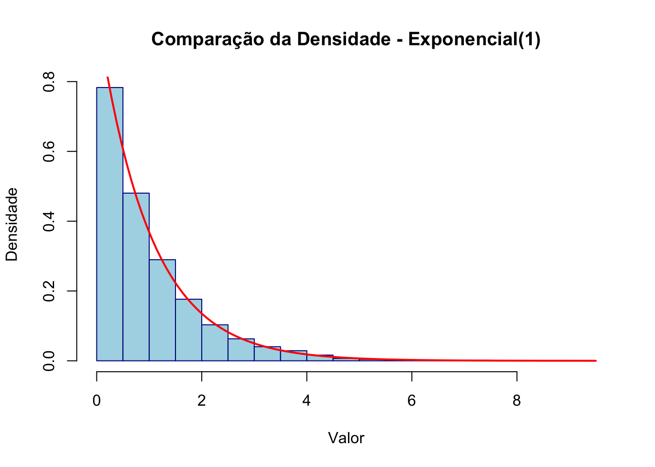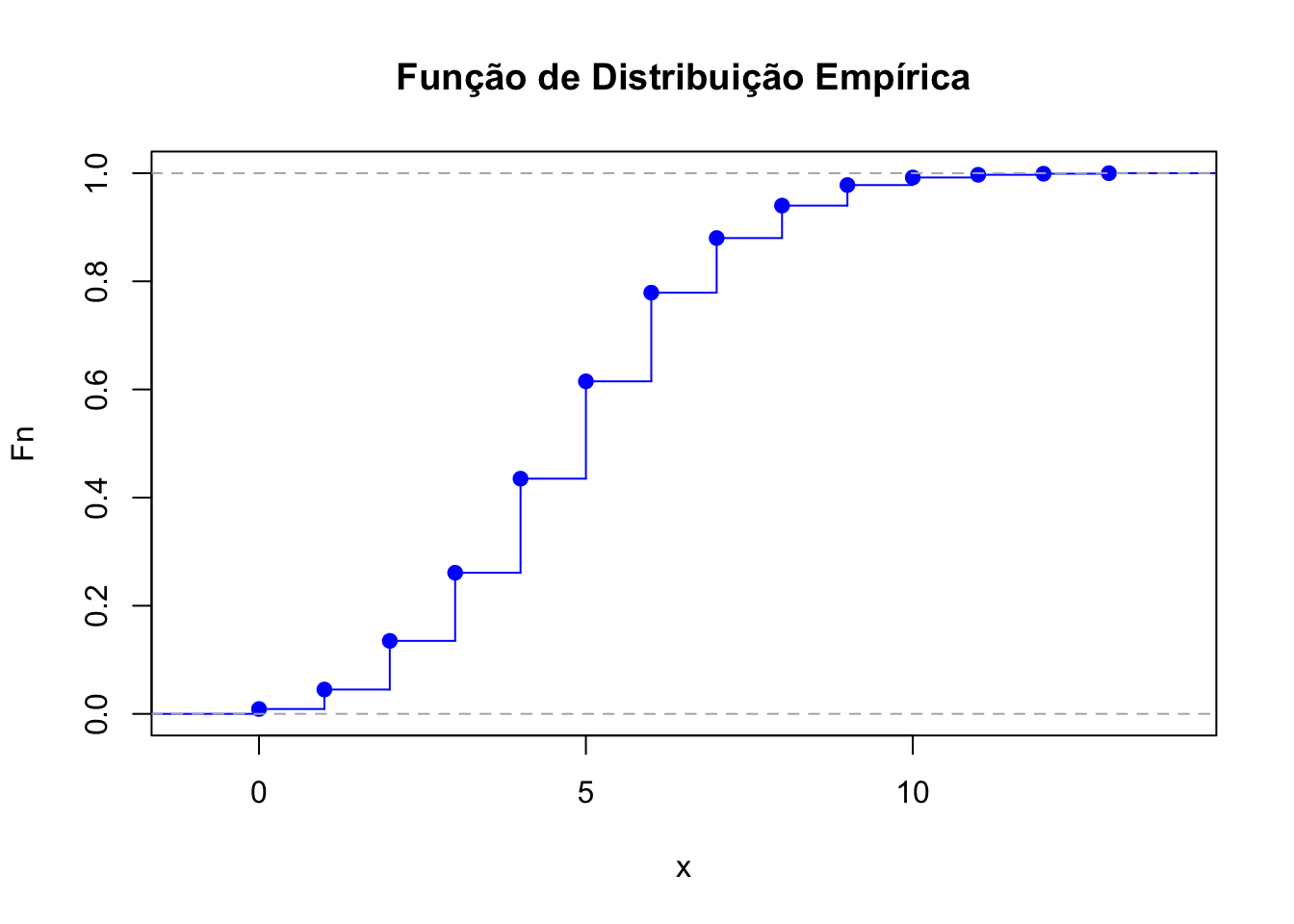 plot(Fn, main = "Função de Distribuição Empírica", xlab = "x", ylab = "Fn(x)", col = "blue", lwd = 2)